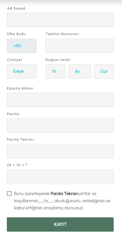 3. Açılan sayfadaki üyelik formunu doldurun.
