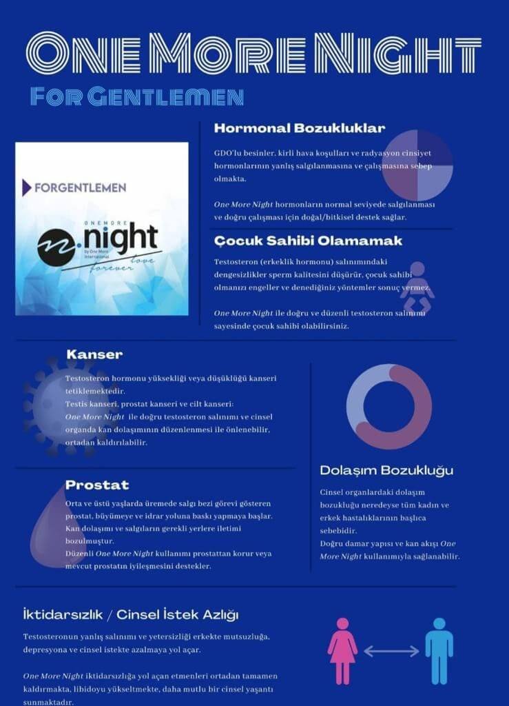 One More Night Gentlemen, erkeklerin fiziksel dayanıklılığını, enerjisini ve iç dengesini desteklemek için özel olarak formüle edilmiş modern bir Transdermal terapötik banttır.