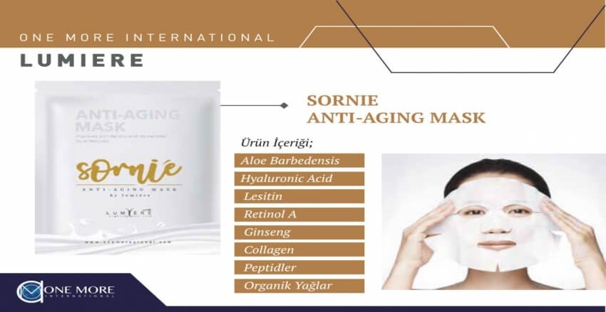 Anti-aging bakımınızı tamamlamak ve etkisini mühürlemek için Sornie Anti-Aging Mask 8’li Set + Lumière Güneş Kremi kombinasyonunu tercih edin.